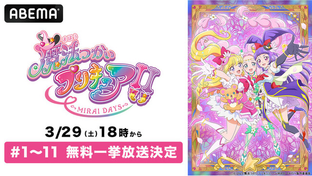 新しい未来のテレビ「ABEMA」は、「プリキュア」シリーズの新作アニメ『魔法つかいプリキュア!!~MIRAI DAYS~』を、最終話放送直前の2025年3月29日(土)18時より、最新話まで全話無料一挙放送いたします。