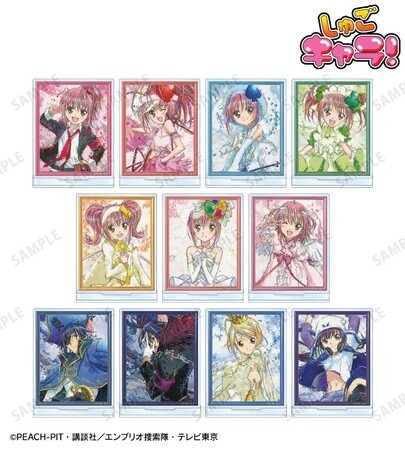 日奈森あむ、アミュレットハート、アミュレットスペード、アミュレットクローバー、アミュレットダイヤ、アミュレットフォーチュン、アミュレットエンジェル、セブンシーズトレジャー、デスレーベル 、プラチナロワイヤル、ビートジャンパーのイラストを新たなタッチで魅力的に表現し、アクリルスタンドに仕上げました。