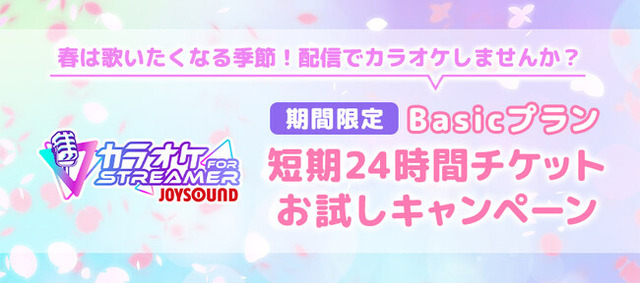 株式会社エクシング(本社:名古屋市瑞穂区、代表取締役社長:水谷 靖)は、ライブ配信・動画投稿者(STREAMER)をターゲットとした個人向け本格カラオケサービス「カラオケJOYSOUND for STREAMER」において、従来のBasicプラン30日 3,500円(税込)のチケットに加え、3月27日(木)から4月28日(月)までの期間限定で、1日のご利用から気軽にお試しいただける「Basicプラン短期24時間チケット」を1,500円(税込)で販売します。