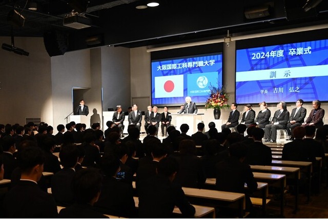 関西で唯一の「AI・IoT・ロボット」「ゲーム・CG」の実践的な新大学として、2021年4月に開学した大阪国際工科専門職大学は、2025年3月16日、第1期生の卒業式・学位授与式を挙行しました。