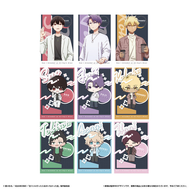 今回開催する【TVアニメ「合コンに行ったら女がいなかった話」POP UP SHOP in TOWER RECORDS】では、本ポップアップショップのために描き下ろした新規イラストが登場。このイラストを使用した缶バッジやアクリルスタンドなどを多数先行販売します。また期間中ポップアップショップ3店舗にて対象商品を税込3,300円以上ご購入の方には、限定特典ポストカードを先着で差し上げます。