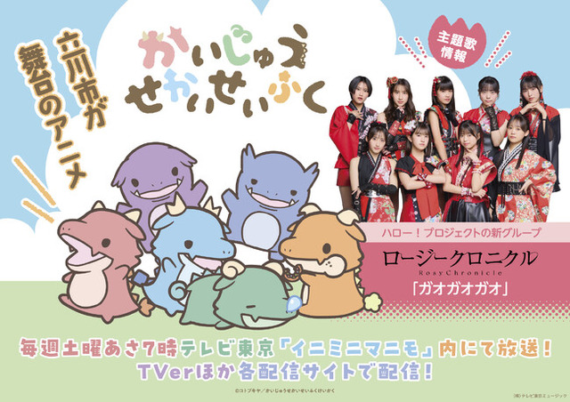 2025年4月5日(土)より、テレビ東京にて毎週土曜あさ7時からイニミニマニモ内で放送を開始する『かいじゅうせかいせいふく』(株式会社壽屋(本社:東京都立川市、代表取締役社長:清水一行))と、本作品で主題歌を担当するハロー!プロジェクトの新グループ『ロージークロニクル』(所属アップフロントプロモーション)のビジュアルが描かれた広告が、東京都立川市が舞台となる本作品に合わせてJR立川駅構内に掲出、伊勢丹立川店の『ISETAN TACHIKAWA VISION』、アレアレア1の『アレアビジョン』では作品のプロモーションビデオが流れます。