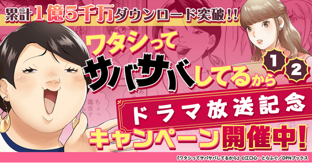 DPNブックスの大人気作品『ワタシってサバサバしてるから』(作画:江口心 原作:とらふぐ)のドラマシーズン1・2の放送を記念し、各電子書店での無料話増量キャンペーン、なにとぞ編集部公式Xでのプレゼントキャンペーンなど様々なキャンペーンを開催中です!