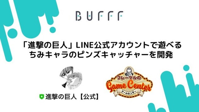 株式会社Bufff(本社:静岡県浜松市、代表取締役/CEO:成瀬 兼人)は、「進撃の巨人」LINE公式アカウントから楽しめる、LINEミニアプリを使用したゲーム「フレーゲルのゲームセンター」を開発いたしました。