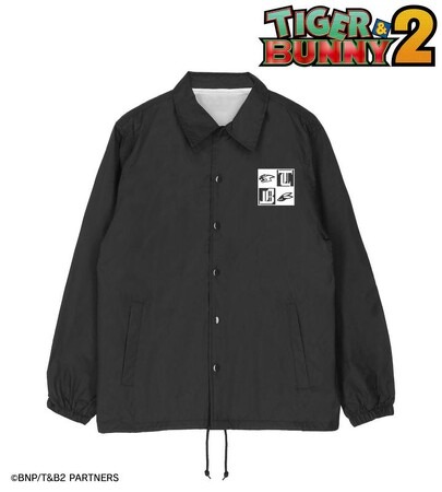 ワイルドタイガー、バーナビー・ブルックス Jr.のヒーローマーク、ヒーロー名の頭文字を胸元にレイアウトしたデザインのコーチジャケットに仕上げました。