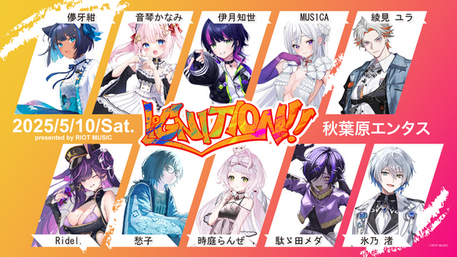 株式会社RIOT MUSIC(本社:東京都港区、代表取締役:舩橋 純、株式会社Brave group100%子会社)は、2025年5月10日(土)秋葉原エンタスにて、新たなライブイベント『IGNITION!! 2025.05 presented by RIOT MUSIC』を主催いたします。本日2025年3月31日(月)18:00よりチケット販売を開始いたしました。