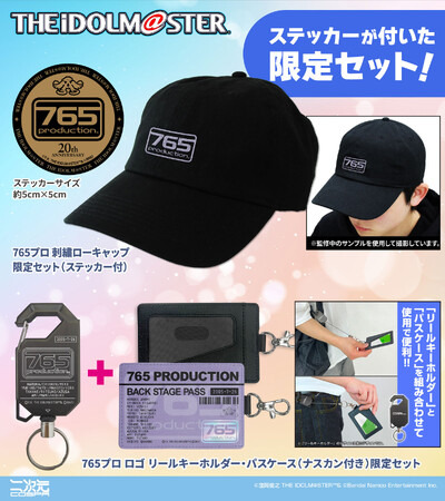 このセットだけのステッカーが付いた「★限定★765プロ 刺繍ローキャップ限定セット(ステッカー付)」をはじめ、「★限定★765プロ ロゴ リールキーホルダー・パスケース(ナスカン付き)限定セット」や「Tシャツ」など新グッズをどうぞお見逃しなく。