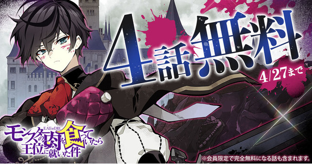 「モンスターの肉を食っていたら王位に就いた件」(原作:駄犬 漫画:鈴羅木かりん キャラクター原案:芝)がヤングアニマルWebにて4話無料キャンペーン!!
