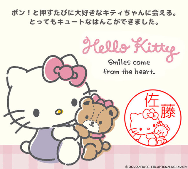 「サンリオキャラクターずかん(ハローキティver.)」は、世界中で人気のキャラクター・ハローキティのイラストを印面に入れたオリジナルはんこ。かわいらしいハローキティのイラストに好きな名前を入れて、オーダーメイドでつくることができます。今回はこれまで販売していたクイックC9タイプから「CAMILAタイプ」に、さらにおしゃれに可愛くなってリニューアルしました。