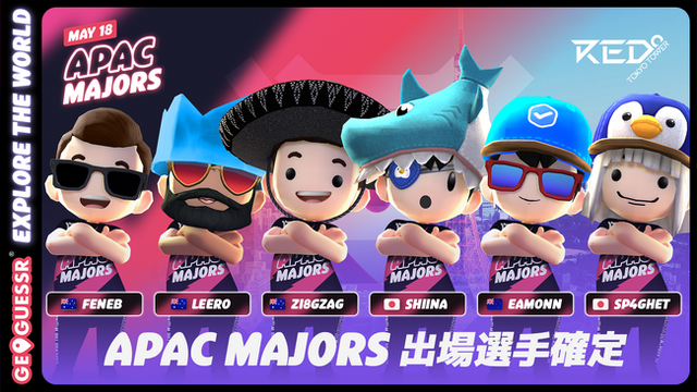 株式会社プレイブレーン (本社所在地:東京都品川区 以下、プレイブレーン) は、大会制作パートナーを務める地理探索ゲーム「GeoGuessr」のeスポーツアジア太平洋地域決勝大会「APAC MAJORS」において、出場選手6名の決定と、日本語公式配信での出演者情報の公開をお知らせいたします。