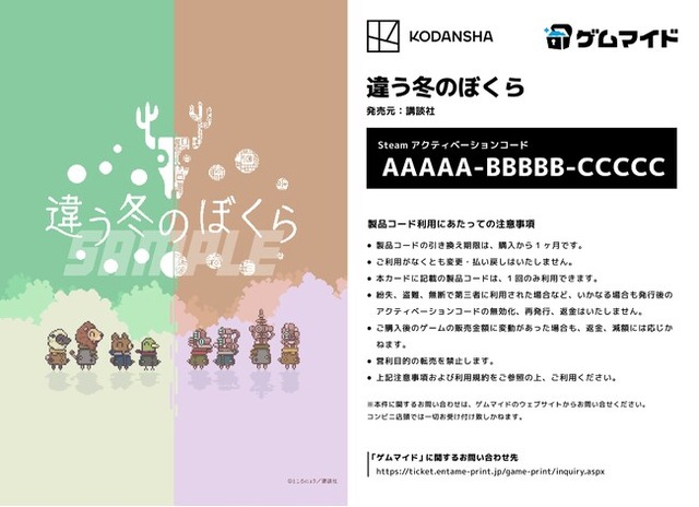 株式会社イード(本社:東京都中野区、代表取締役:宮川 洋、以下 イード)は、ブロマイド付きPCゲームのSteamキーコード販売サービス「ゲムマイド」にて、株式会社講談社の『違う冬のぼくら』、『違う星のぼくら』を4月25日(金)より販売開始いたします。