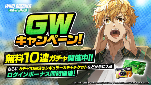 株式会社講談社(本社:東京都文京区、代表取締役社長:野間省伸)は、TVアニメ『WIND BREAKER』(略称、『ウィンブレ』)を題材とした完全新作オンラインゲーム『WIND BREAKER 不良たちの英雄譚』(略称、『ウィンヒロ』)においてゴールデンウィークキャンペーンを開催することをお知らせします。