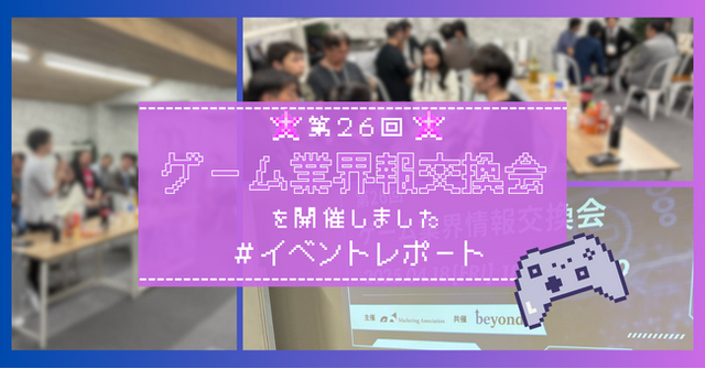 ゲームサポート代行サービスを提供しているマーケティングアソシエーション株式会社(本社:東京都台東区 代表取締役:中園広和、以下当社)は、2025年4月18日(金)、東京都内にて「第26回 ゲーム業界情報交換会」を株式会社ビヨンドとの共催で開催しました。