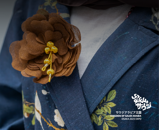 「ビシュトで咲かせる桜 ~文化が花開くワークショップ~」と題されたこの体験型ワークショップでは、日本の「桜」とサウジアラビアの「ハサウィ・ビシュト」という2つの象徴的なシンボルを結びつけ、伝統的なビシュトの生地とサウジアラビアの縫製技術を使って桜の花を作ることができます。