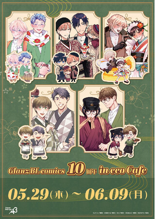 彗星社のBLレーベル「Glanz BL comics(グランツビーエルコミックス)」10周年を記念し、人気5作品が大集合したコラボカフェ「Glanz BL comics 10周年 in eeo Cafe」が開催!