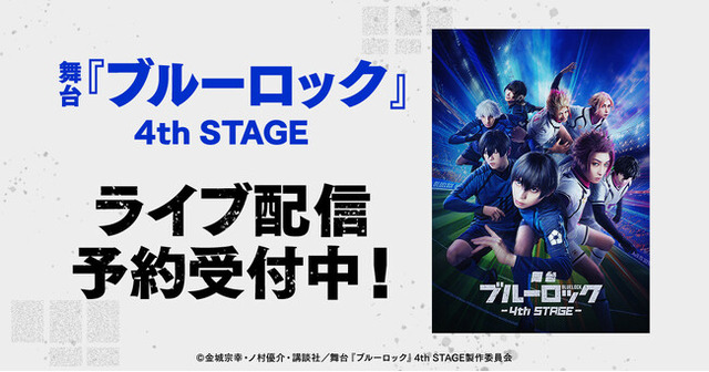 合同会社DMM.com(本社:東京都港区、会長 兼 CEO:亀山敬司 以下「DMM」)は、舞台『ブルーロック』4th STAGEの2025年5月18日(日)17:30公演、【千秋楽】2025年6月1日(日)17:00公演を「DMM TV」にて独占ライブ配信いたします。本日4月30日(水)よりDMM TV特設サイトにて、ライブ配信の予約販売を開始いたしました。ライブ配信は公演終了後も楽しめる見逃し配信付きです。