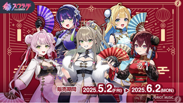 「Blitz Wing」から「松永 依織」「白河 しらせ」「伊月 知世」「蜜乃木 ジル」「時庭 らんぜ」5名の描き下ろしチャイナ衣装イラストを使用したグッズが登場いたします。