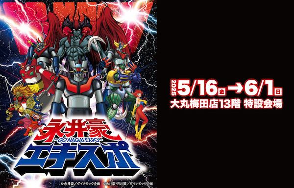 同氏が1972年に発表した代表作漫画「マジンガーZ」「デビルマン」をはじめ「グレートマジンガー」「ゲッターロボ」「UFOロボ グレンダイザー」「鋼鉄ジーグ」「ドロロンえん魔くん」「獣神ライガー」「キューティーハニー」まで永井豪作品のグッズが大阪に大集結!