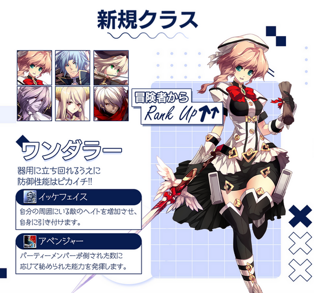 基本クラスの「冒険者」「ソードマン」「アーチャー」「マジシャン」「ヒーラー」「アサシン」の上位クラスとなる、「ワンダラー」「ブレイバー」「スカウター」「マギウス」「プリースト」「オプスキュリテ」を実装しました。「ワンダラー」は各連盟の副会長である「ジョカ」「シーラ」に話しかけることで、その他のクラスはセニート王国大聖堂のNPC「レイミー」のクエストをクリアすることでクラスチェンジが可能となります。