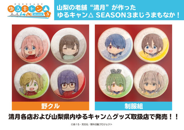 TVアニメ『ゆるキャン△ SEASON3』とコラボレーションした特製最中『ゆるキャン△ SEASON3 まじうまもなか』が、昭和6年(1931年)創業の山梨県の老舗菓子店「清月」の協力により発売されます。