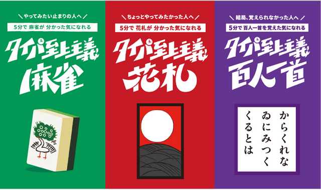 そんな『タイパ至上主義麻雀』に続いて、タイパシリーズの最新作が2種類登場!『タイパ至上主義花札』では、花札の緊張感あふれる「こいこい!」の駆け引きを、『タイパ至上主義百人一首』では、百人一首の札を勢いよく弾き飛ばす爽快感を“最短5分”で楽しめます。新感覚のゲーム体験をぜひお試しください。