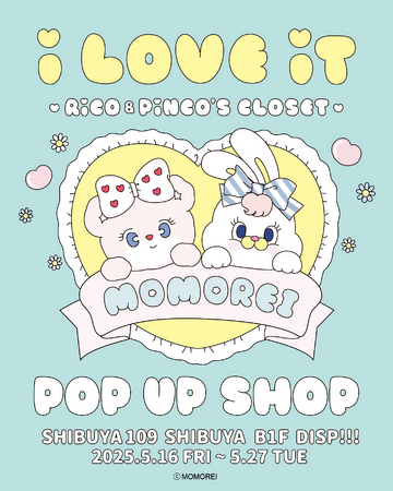 株式会社LINDA.(本社:東京都渋谷区)は、韓国発の大人気キャラクター「MOMORE(モモレイ)」のポップアップイベント「i LOVE iT~RiCO & PiNCO’S CLOSET~」を、SHIBUYA109渋谷店B1階イベントスペースDISP!!!にて株式会社マリモクラフトの運営の元、開催いたします。