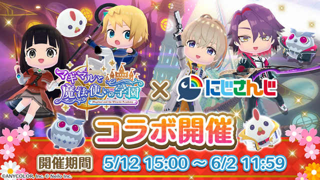 ゲーム開発やサウンド制作などを手がけるネイロ株式会社(本社:東京都新宿区、代表取締役:村澤清彰、 以下ネイロ)は、バーチャルライバーグループ「にじさんじ」所属のVTuber、風楽奏斗さん(@KNTFR2434)と、渡会雲雀さん(@watarai_hibari) との『マギマルと魔法使いの学園』ゲーム内コラボを5月12日(月)15時より開催することを発表いたします。また今回のコラボを記念し、5月13日(火)および5月23日(金)にコラボYouTubeライブ配信を実施いたします。