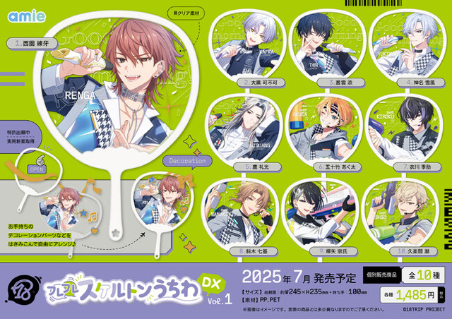 フィギュア&ホビー通販大手の「あみあみ」を運営する大網株式会社(本社・東京都文京区)は、自社が展開するグッズブランド「amie(アミィ)」から『18TRIP』の「フレフレスケルトンうちわDX Vol.1/Vol.2」「ジュエリープレートコレクション Vol.1~4」を現在、ご案内中です。