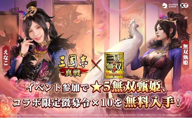 ぜひこの機会に『三國志 真戦』をプレイしてみて、えなこさんがコスプレした「無双甄姫」を入手してください!