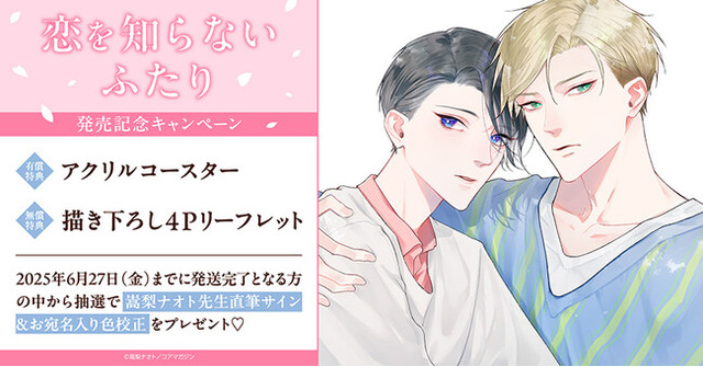 株式会社TORICO(本社:東京都千代田区、代表取締役社長:安藤拓郎)が運営するホーリンラブブックスにて、嵩梨ナオト先生『恋を知らないふたり』発売記念キャンペーンを開催いたします。