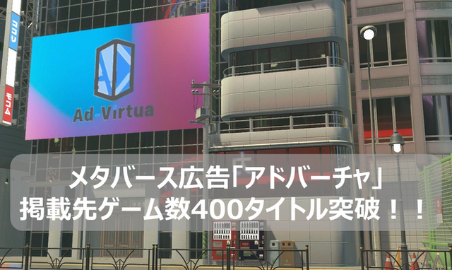 アドバーチャ株式会社(所在地:東京都渋谷区、代表取締役社長:水野 征太朗、以下「アドバーチャ」)は、メタバース広告プラットフォーム「アドバーチャ」において、広告モニターを設置いただいたメタバース・ゲーム数の累計が400タイトルを突破したことをお知らせいたします。