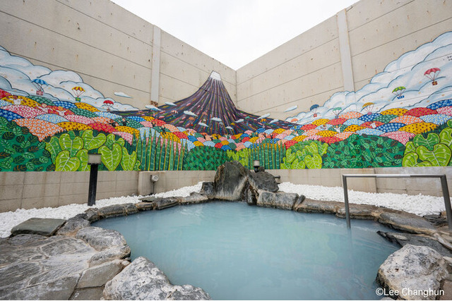 ミヤザキ氏とスタッフが一丸となって作り上げた壁画を、ぜひ露天風呂とともにお楽しみください。