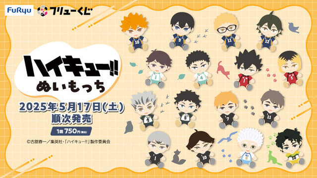 フリュー株式会社(本社:東京都渋谷区、代表取締役社長:三嶋 隆、以下 フリュー)が展開するハズレなしのオリジナルくじ『フリューくじ』の最新作として、『フリューくじ アニメ「ハイキュー!!」 ぬいもっち』を、5月17日(土)よりローソン、ミニストップ、ホビーショップ、書店などにて順次発売することを決定いたしました。加えて、A~H賞、『ラストゲット』賞、『ダブルゲット』賞の全賞詳細を初公開します。