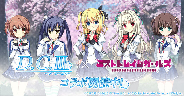 合同会社EXNOA(本社:東京都港区、CEO:村中 悠介、URL:https://games.dmm.com/)と株式会社KMS(本社:東京都品川区、代表:梶原 健太郎、URL:http://kms3.com/)は、『ミストトレインガールズ~霧の世界の車窓から~』において、2025年5月7日(水)より『D.C.III』とのコラボを開催することをお知らせいたします。
