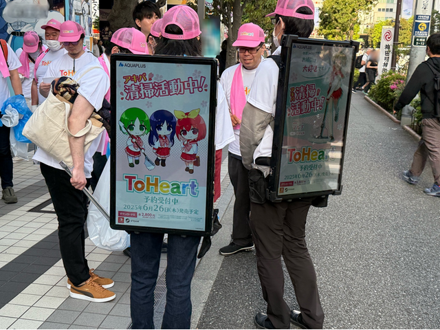 株式会社アクアプラスは5月4日、『ToHeart』(発売日:2025年6月26日)のプロモーション施策「『ToHeart』発売記念!秋葉原の街を一緒にクリーン作戦」を実施いたしました。当日は「歩く広告!アドマン」とコラボレーションし、『ToHeart』のPV映像を掲載したアドマンが秋葉原駅周辺を歩行。またプロモーションの一環として、「AQUAPLUS official members club」内で募った参加者とともに同エリアの清掃活動を行いました。
