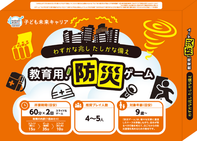 e-ラーニングに関するサービスの様々なコンテンツを提供する株式会社イー・ラーニング研究所(代表取締役:吉田智雄、本社:大阪府吹田市 以下、イー・ラーニング研究所)は、子どものときから夢や目標を持ち、グローバル社会で必要となる知識と能力を育む、キャリア教育用ボードゲーム教材『子ども未来キャリア』を開発しております。この度新テーマとして、いつ発生するかわからない災害から命と暮らしを守るために、適切に対処できるような備え方や、周囲との協働性が学べる教材である『防災ゲーム』をリリースいたします。