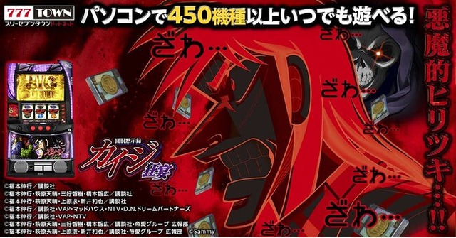 株式会社サミーネットワークスが運営するPC向けパチンコ・パチスロオンラインゲーム「777TOWN.net」(スリーセブンタウン・ドットネット)は、2025年5月12日(月)より、サミー株式会社の「回胴黙示録カイジ 狂宴」アプリを配信いたします。