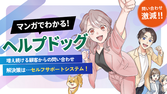 本コンテンツは、FAQツールやサポートチャットの導入に悩む現場担当者、DX推進担当者に向けて、「現場で本当に起きていること」と「それをどう乗り越えるか」を疑似体験できるよう企画されました。多忙な中でもわずか1分で視聴できる形式とし、年齢問わず、親しみやすいマンガ形式を採用することで、より多くの人にわかりやすく情報を届けることを目指しています。■ セルフサポートシステム「ヘルプドッグ」について