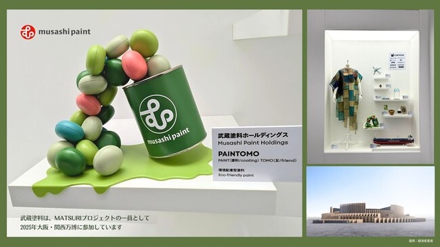 武蔵塗料ホールディングス株式会社(本社:東京都豊島区、代表取締役社長:福井裕美子)は、藻類産業の社会実装を目指す「MATSURI」プロジェクトの一員として、2025年日本国際博覧会(以下、2025年大阪・関西万博)の日本館ファクトリーエリア内に設置している「ものもの by MATSURI」に、藻類由来の原料を活用した塗料で制作した立体展示物 「PAINTOMO(ペイントモ)」を展示しています。