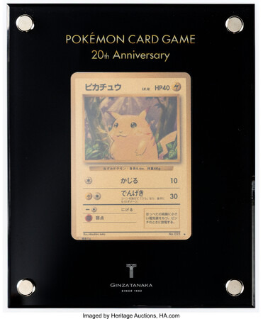 4月17日(米国現地時間)に開催された第1弾オークションには、ポケモン20周年を記念して制作された純金製ピカチュウカードをはじめ、ゲンガーやエーフィのレアカード、初期の遊戯王ブースターパックなど、希少価値の高いアイテムの数々が出品されました。