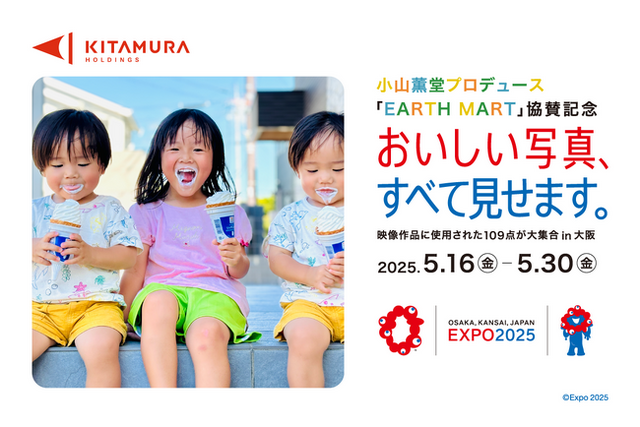 株式会社キタムラ・ホールディングス(本社:東京都新宿区、代表取締役 社長執行役員 CEO:福本 和宏)は、2025年5月16日(金)~2025年5月30日(金)と2025年8月2日(土)~2025年8月18日(月)の期間、株式会社カメラのキタムラ カメラのキタムラ大阪/なんばCITY店にて、「大阪・関西万博シグネチャーパビリオン 小山薫堂プロデュース『EARTH MART』協賛記念 おいしい写真、すべて見せます。映像作品に採用された109点が大集合!in大阪」を開催いたします。