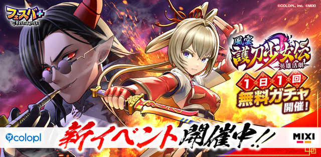 株式会社コロプラ(代表取締役社長 上席執行役員 CEO:宮本貴志、本社:東京都港区、以下「コロプラ」)は、株式会社MIXI(代表取締役社長 上級執行役員 CEO:木村弘毅、本社:東京都渋谷区、以下「MIXI」)と共に取り組んでいるスマートフォン&PC向けゲーム『フェスバ+』について、新イベント「英雄活劇 風雲 護刀少女伝」を2025年5月13日(火)より開始したことをお知らせいたします。