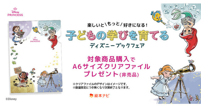 絵本ナビで対象書籍のご購入・ご予約特典として先着100名様へ、ディズニープリンセスの非売品A6版クリアファイルをプレゼント!