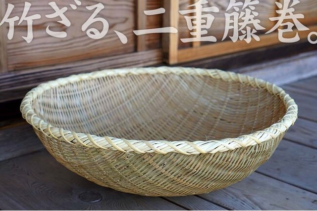 深竹ざる(亀ざる)籐巻 小 40cm