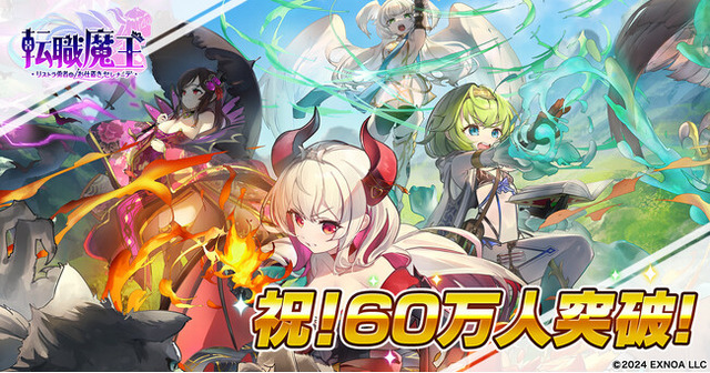 合同会社EXNOA(本社:東京都港区、CEO:村中 悠介、URL:https://games.dmm.com/)は、『転職魔王~リストラ勇者のお仕置きセレナーデ~』(以下、『転職魔王』)にて、ユーザー数が60万人を突破し、突破記念としてログインボーナスの実施をお知らせいたします。