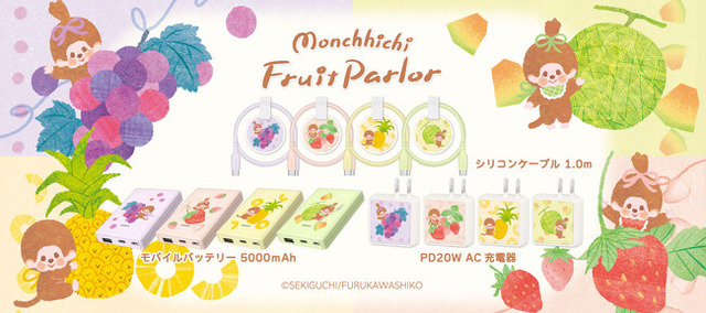 コラボアートのテーマは「フルーツパーラー」、ジューシーなフルーツと最高にキュートなモンチッチたちとスマートフォンアクセサリーとのコラボレーションを楽しんでください。