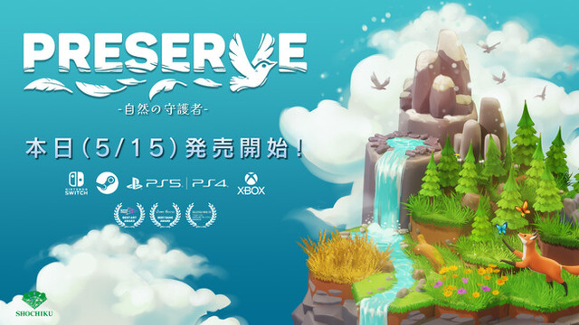 生態系を育む建築&パズルゲーム『PRESERVE : 自然の守護者』の製品版がついに本日5月15日午後10時(日本時間)より発売を開始いたしました。販売プラットフォームはPC(Steam)、Nintendo Switch、Xbox、PlayStationとなっており、松竹はアジア圏におけるパブリッシングを担当しています。