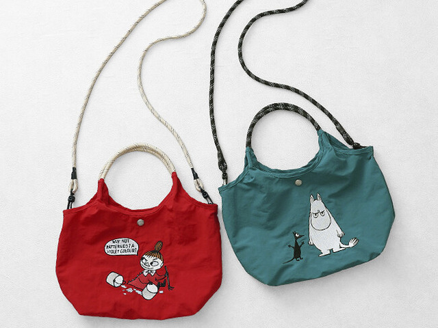 大人気キャラクターのムーミン、リトルミイ、スナフキン、スティンキーやニョロニョロが刺繍された多機能2WAYバッグシリーズは、必要最小限のアイテムをざっくり収納できる内ポケット1つの最小限のギミックでトップにはニョロニョロが刻印されたボタンが付いています。また、取り外し可能なロープショルダーで利用シーンに合わせてショルダーにもトートにも使い分けが可能。軽量で軽はっ水加工と、日常に嬉しい機能がいっぱい。