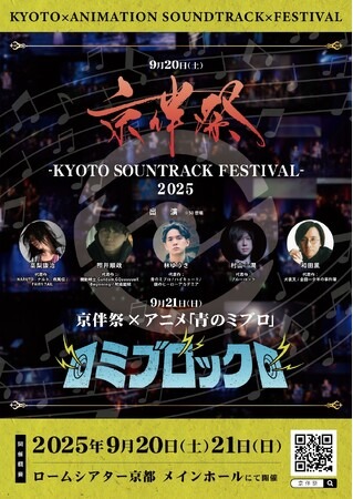 2025年9月20日(土)ロームシアター京都にて開催、アニメのサウンドトラックが主役の劇伴音楽フェス『京伴祭 -KYOTO SOUNDTRACK FESTIVAL- 2025』に、高梨康治(代表作:NARUTO-ナルト- 疾風伝 / FAIRY TAIL 等)、照井順政(代表作:機動戦士Gundam GQuuuuuuX / 呪術𢌞戦 等)、和田薫(代表作:犬夜叉 / らんま1/2 等)、ゲストとして村山☆潤(代表作:ブルーロック 等)の出演が決定しました。