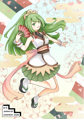 桜や和装、扇子などで日本らしさを表現し、緑髪の活発なキャラクターが若々しさと個性を際立たせています。色彩の調和や軽やかさも印象的で、イベントの華やかさと親しみやすさをうまく両立している点が高く評価されました。伝統と現代性を融合させた本作品は、「発掘」をテーマとするオーディションの趣旨にも合致しており、大賞には至らなかったものの、その表現力と熱意を称え、特別賞として選出させていただきました。